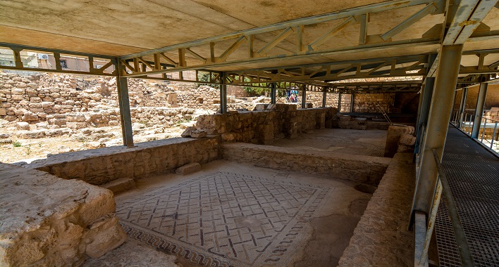 The Madaba Archaeological Park, built in 1991 AD near the Madaba Visitors Center, consists from ancient archeological groups such as the Roman Road, Hippolytus Hall, Church of Prophet Elias, Crypt of Saint Elianos, Church of the Virgin Mary and the Mosaic Exhibition. The ancient Roman Road separates the city and leads to the gates of its ancient walls. This road is characterized by its cobbled stones and its surrounding columns dating back to the Byzantine and Roman periods.