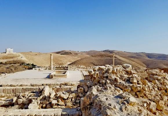 In 37 BC the Roman senate proclaimed Herod (later called ‘the Great’) king over the people and lands of his Hasmonaean predecessors. Machaerus was rebuilt by Herod both as a palatial and secure summer residence and also as a defense against the neighboring Nabataeans.